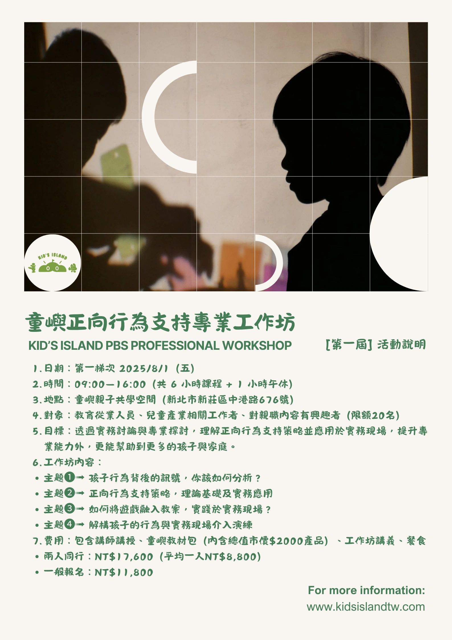 - 平日場次:教育從業人員、兒童產業相關工作者、對親職內容有興趣者